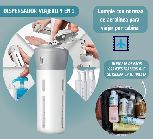 Dispensador Multiusos de Viaje – Lleva 4 líquidos en 1 solo envase