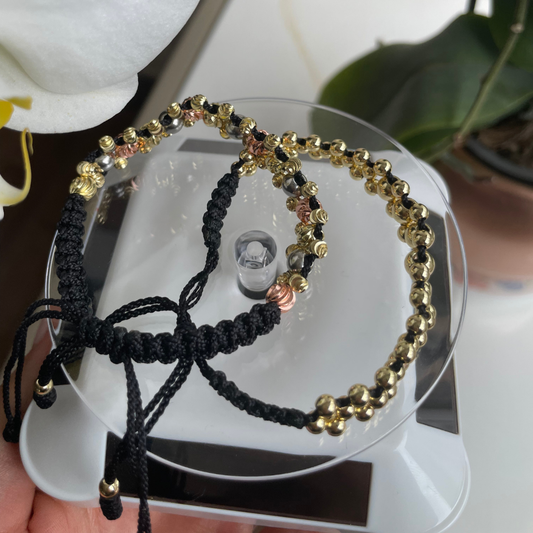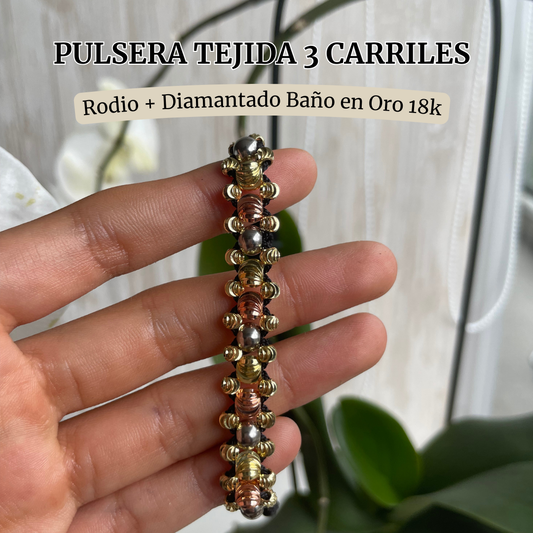 AHORRAS $55.000Pulsera Tejida 3 Carriles + Diamantada 3 Oros